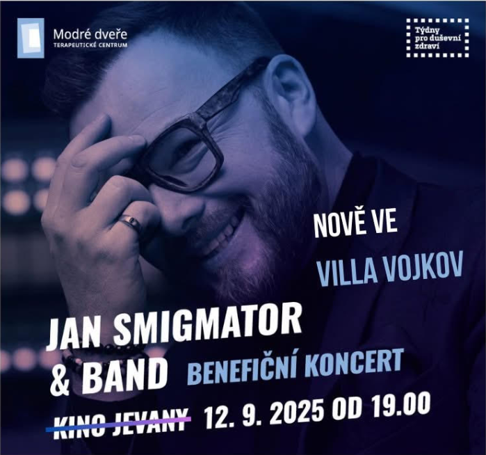 Připojte se k nám na benefiční koncert Jan Smigmator & Band ve Villa Vojkov, podporující naše centrum Modré dveře!