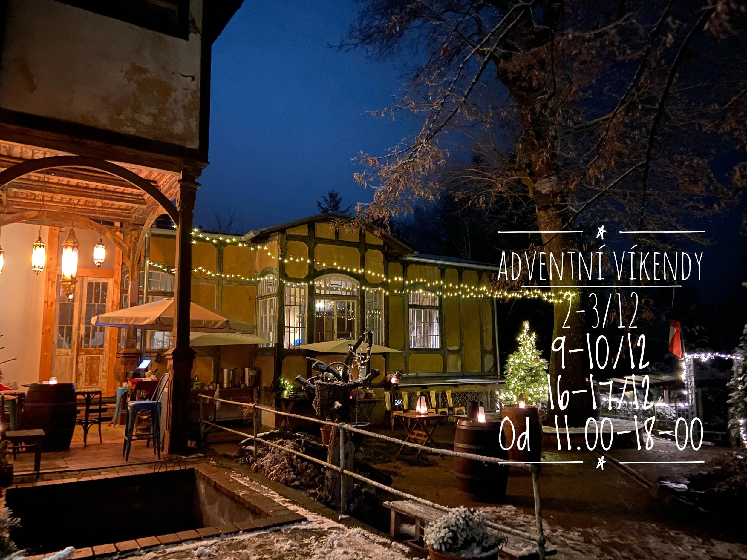 Můžete se u nás zastavit na pořádnou zimní polévku, kus masa,vinnou krůtí klobásu a něco sladkého. Zapálíme ohně a připravíme dostatek svařáku, dětského punče, piva, vína a bublinek…